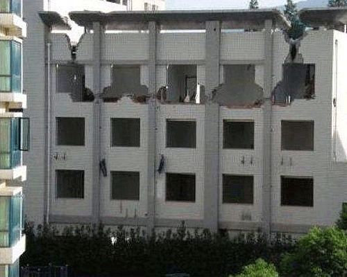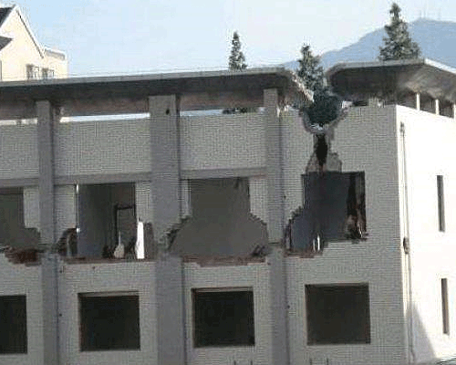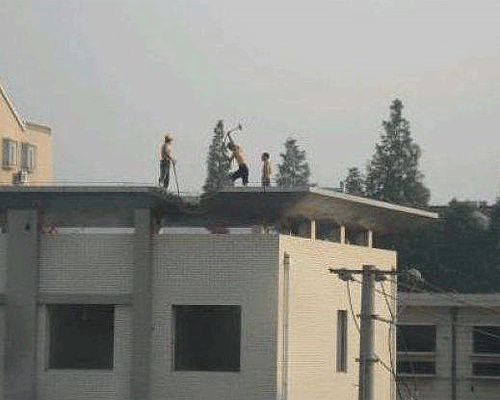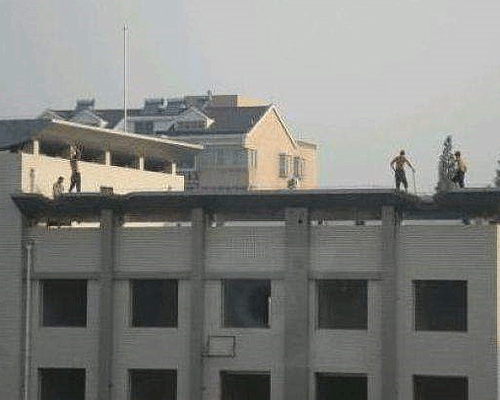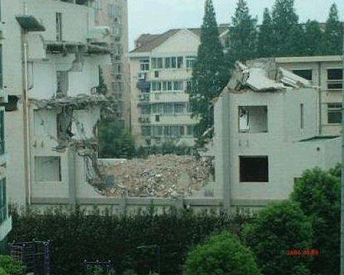 Mirad como estos trabajadores echan a bajo un edificio con pico y martillo...asombroso