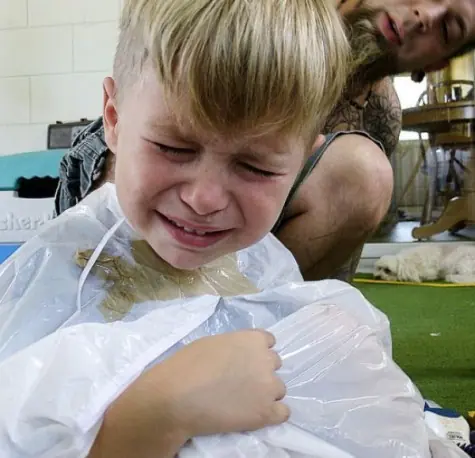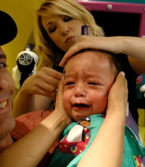 Los niños cuando van a la peluquería se sienten como si fueran a la guillotina...sino mirad lo mal que lo pasan estos críos