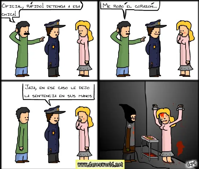 Pero al pasar unos minutos, tocan la puerta de la clase y entra una niña toda golpeada, la profesora le pregunta: