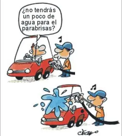 Agua para el parabrisas ¡Oiga señor era solo un poco de agua para el parabrisas!.