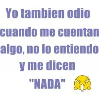 "YO TAMBIEN ODIO CUANDO ME CUENTAN ALGO, NO LO ENTIENDO Y ME DICEN "NADA" :@"