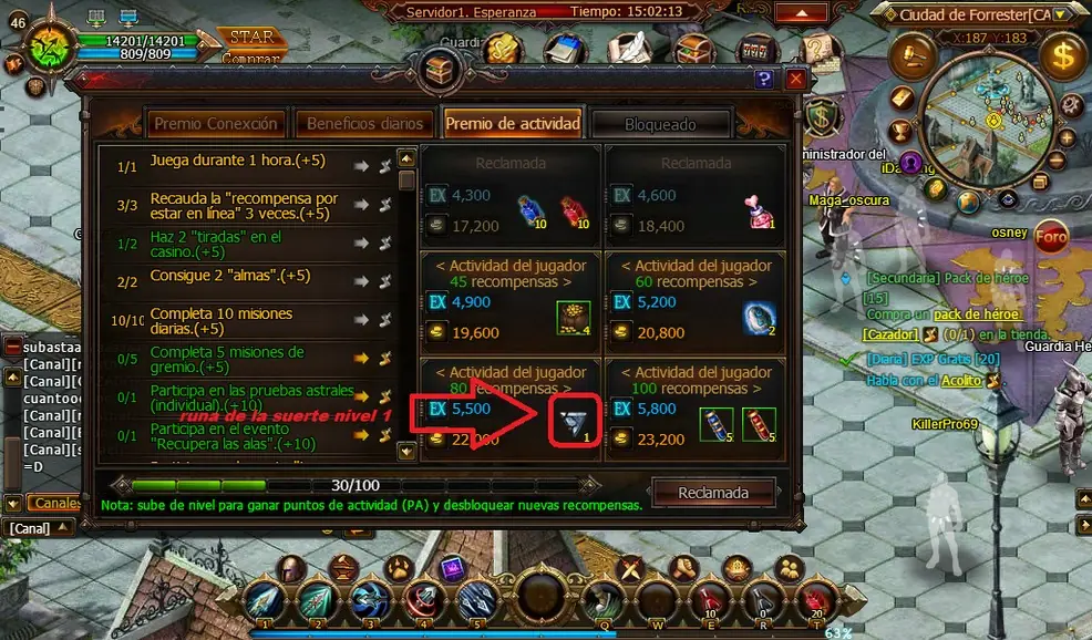 En beneficios diarios hay de premio una runa de la suerte por 80 puntos de actividad , si se consigue 3 runas de la suerte nivel 1 (proporciona 10% de suerte al mejorar las estrellas del la mascota) podremos fusionarlas por una de nivel 2 (proporciona 20% mas de suerte en una sola runa)