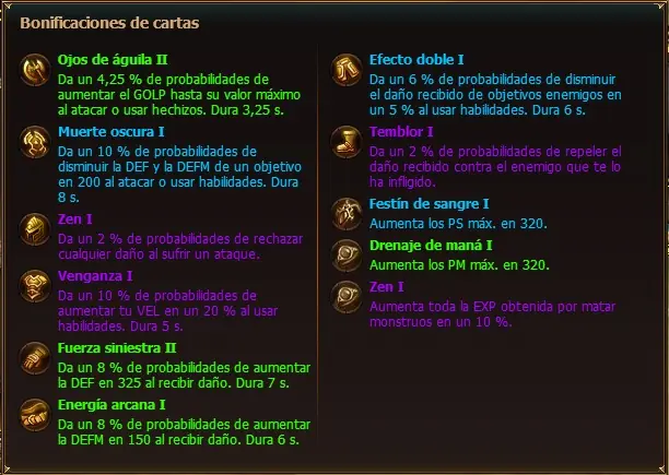 Las cartas causan bonificaciones a tu beneficio por Ej :