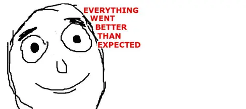 Esta cara, representa lo que textualmente dice "Todo ha salido mejor de lo esperado". Es la antítesis de Fuuu (rage guy) y se utiliza cuando algo que parecía que saldría mal, al final no se tuerce.