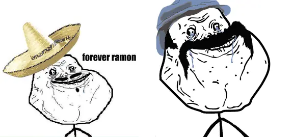 Otra de las expresiones más famosas es la de Forever alone (siempre solo). El humor negro queda bastante representado en este quinto punto, donde se representa una cara particularmente fea, que llora por sentirse solo.
