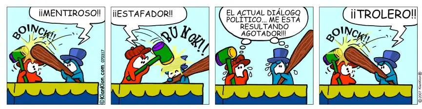 En la política el diálogo y el entendimiento mutuo son imprescindibles, comprobar con nuestros argumentos, ya sean garrote o martillo, que no conseguiremos convencer al contrario de nuestras ideas,... pero que si lograremos provocarle un buen dolor de cabeza si le asestamos un buen golpe pre-electoral.