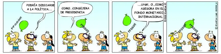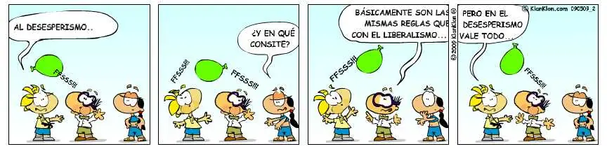Nada ha cambiado, se nos vende como si la crisis económica hubiera hecho reflexionar a nuestra "politocracia", esa nueva clase social que sólo trabaja para si misma, que vende y compra votos en los mercados de los medios de comunicación,... pero no. no hay problema, saldremos de la crisis, con un renovado pensamiento único, una revisión del liberalismo económico a ultranza. Igual que se puede comerciar y explotar a las personas en países sin las mínimas libertades, sin coberturas sociales, explotar los conflictos armados, con el hambre y el palo como estímulo y en pro de una globalización liberadora exprimir a las naciones emergentes,... igualmente se puede nacionalizar la banca, con el dinero de los curritos, para volver a privatizarla con pingües beneficios. Así pues, mantendremos la burbuja flotando en el aire hasta que nos explote en las narices. Mismo perro con distinto collar. En todo caso, eso si, nos reiremos, que para eso hacemos estas historietas, para tomárnoslo con humor.
