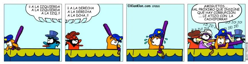 En todos los guiñoles, y más aún en el guiñol político, el tonto policía hace como que no ve a los malos... y los niños entusiasmados, los medios de comunicación, gustan de denunciar los casos de corrupción y escándalo haciendo algaradas y rasgándose las vestiduras, como si tampoco supieran que el policía ( que en realidad no es tonto) no ve porque no quiere ver. Y llegados aquí ¿quién es el más ciego...?