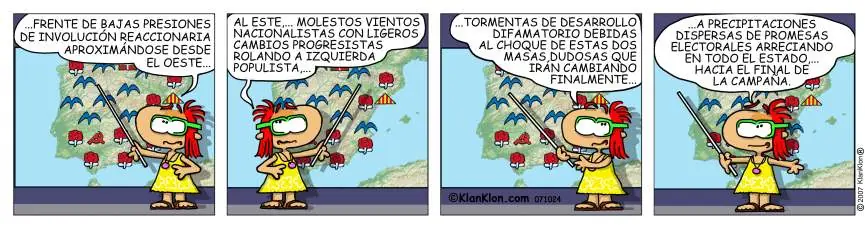 Se acerca ya la campaña electoral, es más, ya estamos totalmente inmersos en ella.... (aunque queden 4 meses) y los políticos (aves de paso) se preocupan por si va a hacer fresco o calor, si les va a tocar sol y buen tiempo, vacas gordas de prebendas y comisiones durante otros cuatro años, o por el contrario, les va a descargar la tormenta mediática de sus corruptelas encima les moja las alitas y las tienen que ahuecar. Por si acaso,... van sacando los paraguas y poniéndose a cubierto... y sobre todo ¡que nadie salpique!