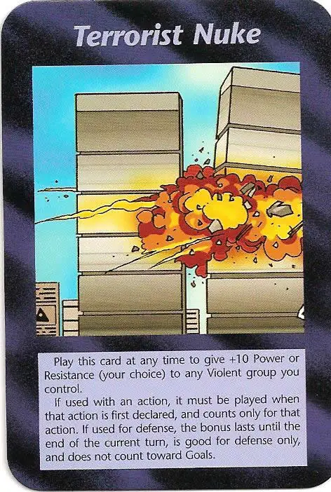 Aparte de nombrar nombres y sociedades secretas, Illuminati incluye escenarios que hemos realmente presenciado siendo desarrollados en los últimos años -- y algunos aún faltan! -- Dos de las tarjetas del juego predijeron los ataques del 9/11. Otros representan el derrame de petróleo del Golfo, el continuo programa de eugenesia Global, Desclasificación Extraterrestre… y el punto en donde la "cinta se termina" …