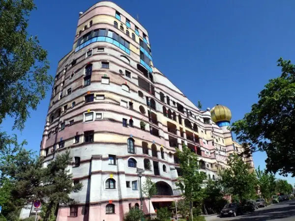 Se trata del edificio Hundertwasser, llamado así por el arquitecto austriaco Friedensreich Hundertwasser, quien imaginó y creó este lugar.