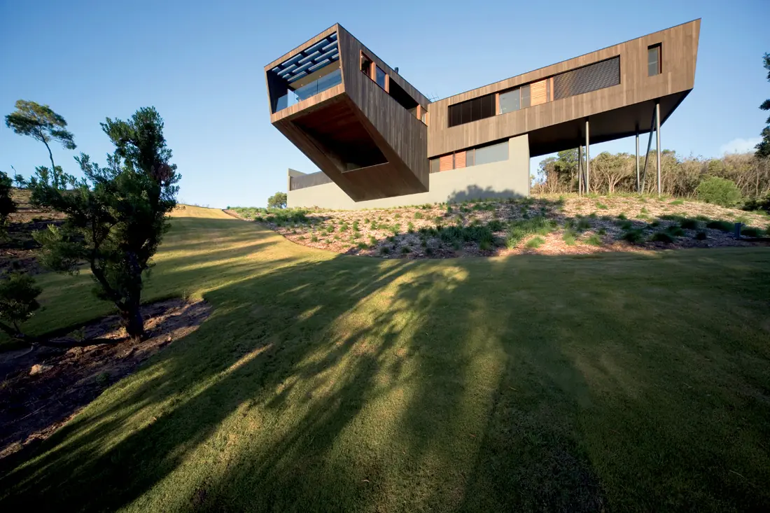 Las imágenes simplemente no hacen justicia a la vista de esta construcción en voladizo, que sobresale de la estructura de la base de la casa y que parece flotar en el espacio.