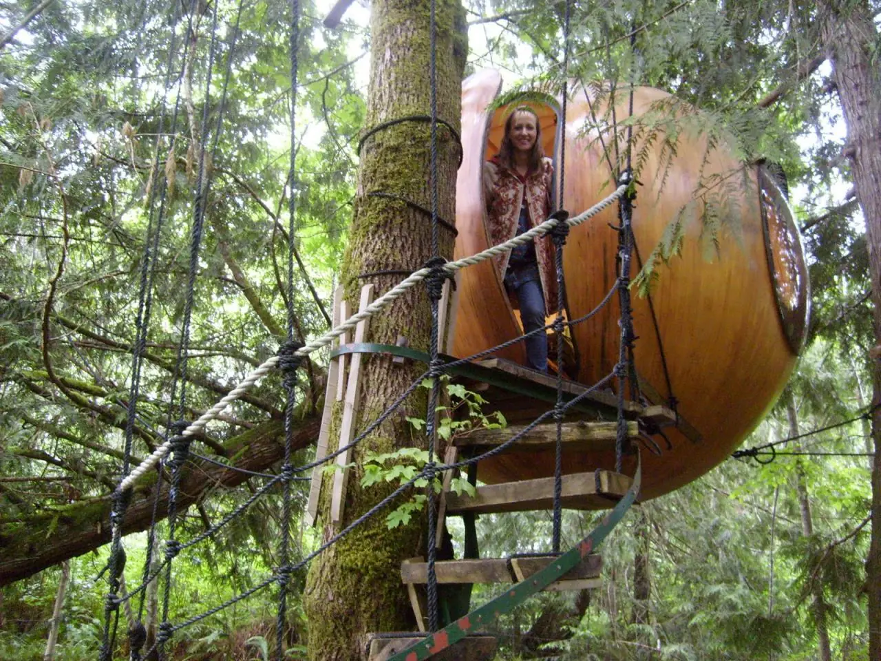 Como su nombre lo dice, se trata de esferas hechas de madera tallada a mano, imaginadas y creadas por Tom Chudleigh. Estas cuelgan de un árbol, roca o alguna estructura y se mueven ligeramente con el movimiento de las personas en su interior. Para llegar a ellas se utiliza una escalera.