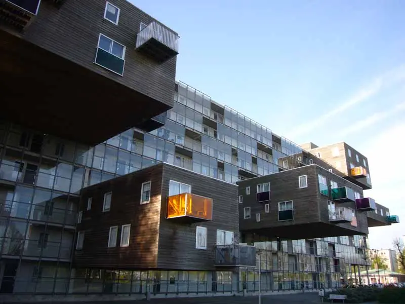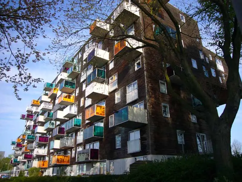 El perfil extravagante de Wozoco nace en realidad de uno de los obstáculos encontrado durante el proyecto: el plan regulador de Cornelis Van Eesteren, que limitaba el número de los pisos por bloque a 87 unidades para que estuviera asegurada a cada una de ellas una buena iluminación natural.