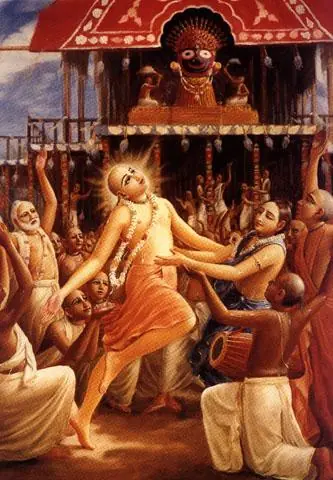 El Señor Caitanya baila delante de los carros de Ratha-yatra