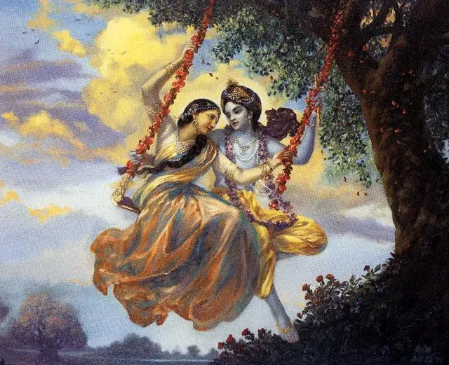 Radha y Krishna en el columpio
