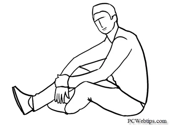 20.El hombre está sentado en el suelo apoyando la espalda contra la pared.