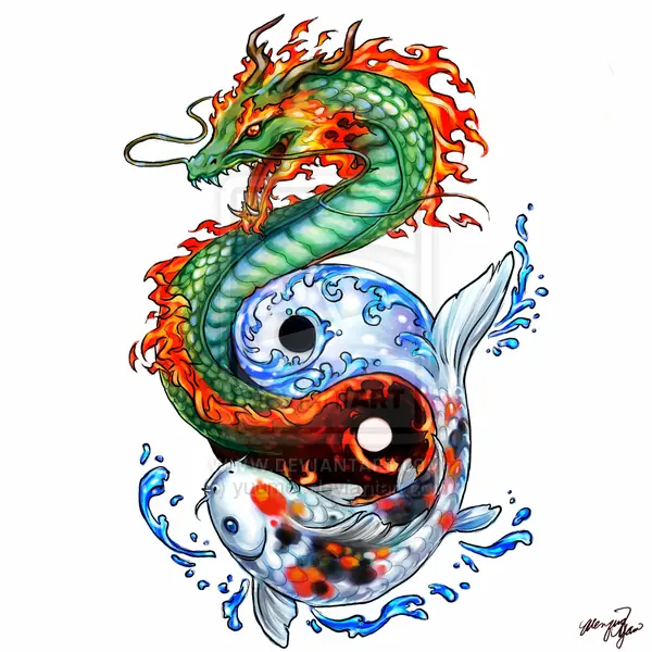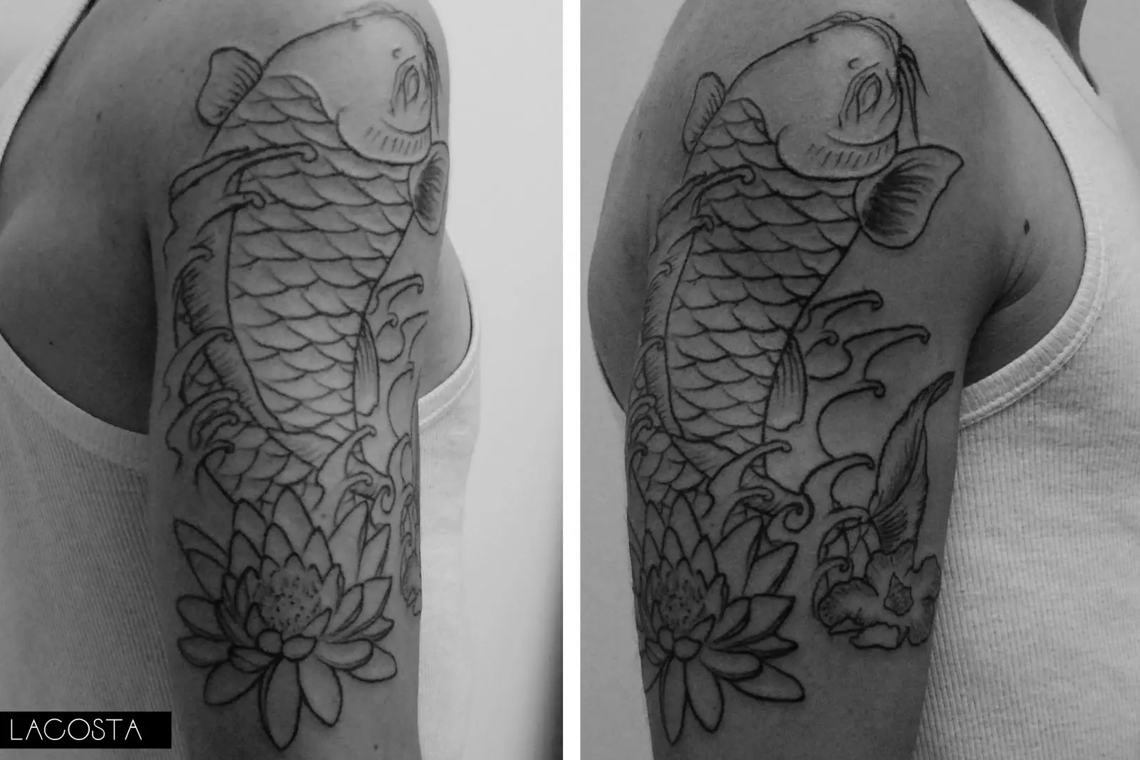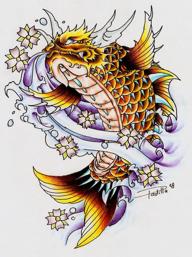 POR ESTO ES MUY COMÚN QUE ESTE TATUAJE A SU VEZ TENGA LA CARA DE UN DRAGÓN Y NO DE UN PEZ, YA QUE REPRESENTA EL MOMENTO EN QUE EL ESFUERZO Y LA AUSENCIA DE RENDIRSE POR UN MÍNIMO INSTANTE DA SU FRUTO.