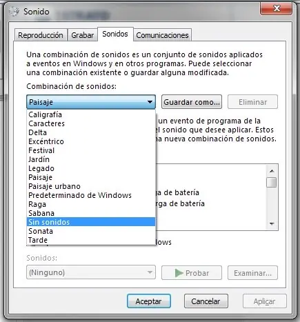 En muchos casos los sonidos del sistema no tienen utilidad práctica, incluso desactivamos el altavoz para no escucharlos. Pues aunque parezca mentira consumen recursos por lo que no está de más desactivarlos. Para hacerlo abriremos menú Inicio y escribiremos mmsys.cpl y luego pulsaremos Enter. Haremos clic en la pestaña sonidos y elegiremos Sin sonidos en el menú desplegable Combinación de sonidos.