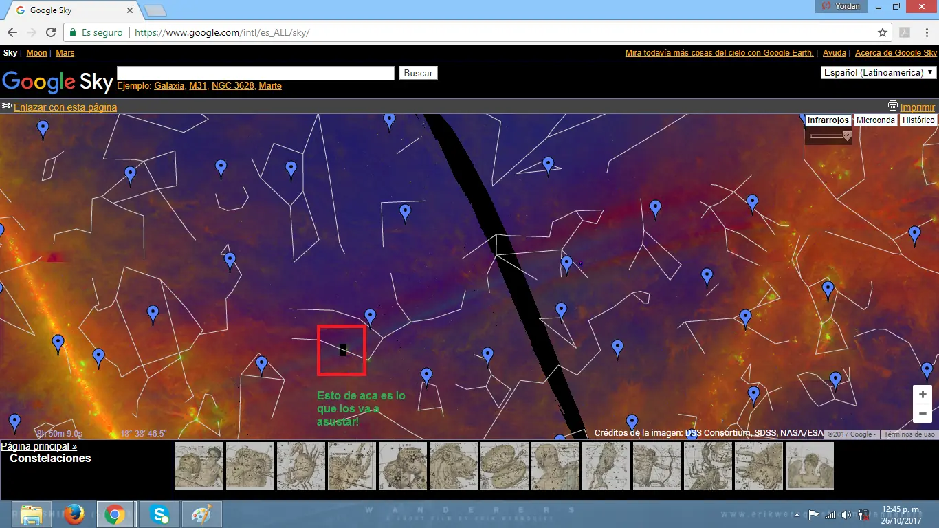 Muy buenas a todos gente, si, ya se que se oye como a el youtuber Dross pero no encontré mejor palabra para el titulo de este post. Les quiero mostrar algo que me tiene bastante pensativo, desde hace unos días estuve molestando con el google sky, viendo las constelaciones y principales estrellas que nos brinda esta pagina de google . La recomiendo mucho.