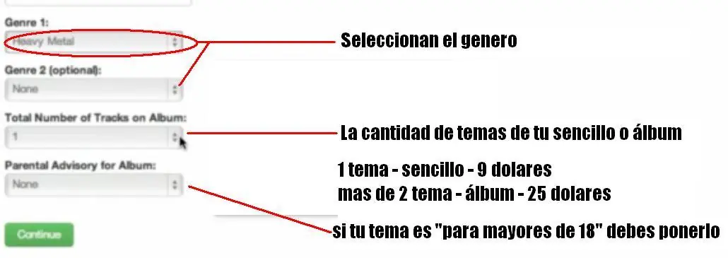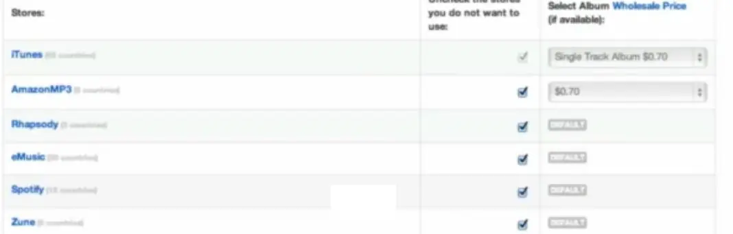 Después debes elegir en que webs musicales estará presente tu tema, cabe destacar que es recomendable seleccionar TODOS puesto que no hay ningún precio extra por ello.