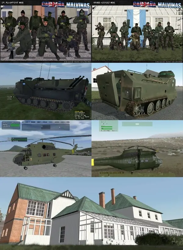 La pantalla Malvinas del juego online Counter Strike, recrea escenarios, establecimientos y monumentos reales que hoy forman parte de las Islas. Entre ellos se encuentran el Cementerio Argentino que está replicado en detalle. Avanzando en el videojuego se encuentra la zona portuaria en donde se pueden ver espacios característicos de Puerto Argentino. Como establecimientos emblemáticos de Malvinas, está el edificio del periódico Penguin News, la oficina de correo de las islas, la iglesia, el banco y también forma parte del escenario el establecimiento en donde se encuentra la firma Falkland Islands Company