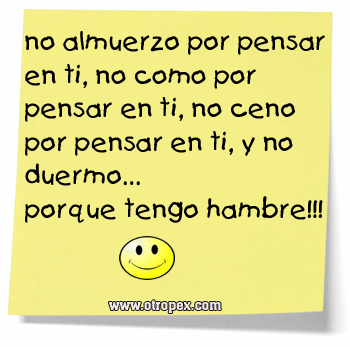 No desayuno porque pienso en ti, no almuerzo porque pienso en ti, no ceno porque pienso en ti y no duermo porque tengo hambre