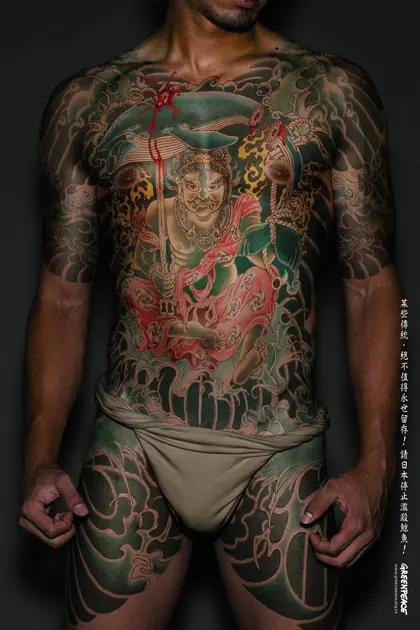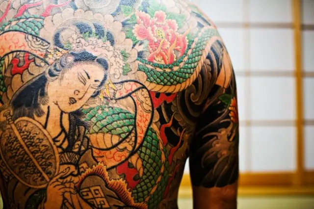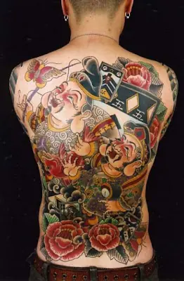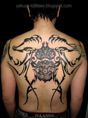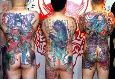 Los tatuajes dentro de la organización son muy importantes; revelan muchas veces el rango dentro de la organización, el clan al que se pertenece, el lema del clan, algunos incluyen dragones y referencias a su genealogia samurai. La mayoría empieza como un tatuaje pequeño al que se le hacen adiciones y terminan cubriendo grandes partes del cuerpo; el tatuaje es uno de los rasgos físicos más característicos de la yakuza.