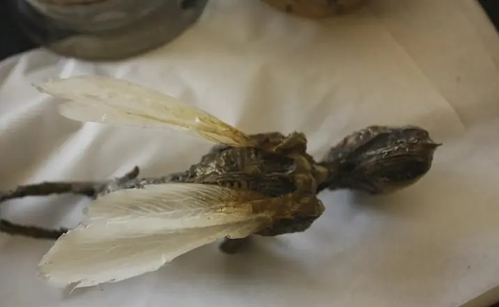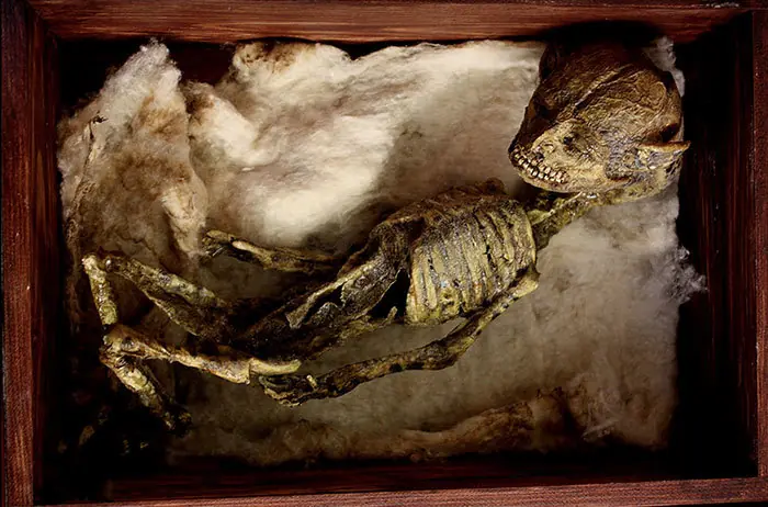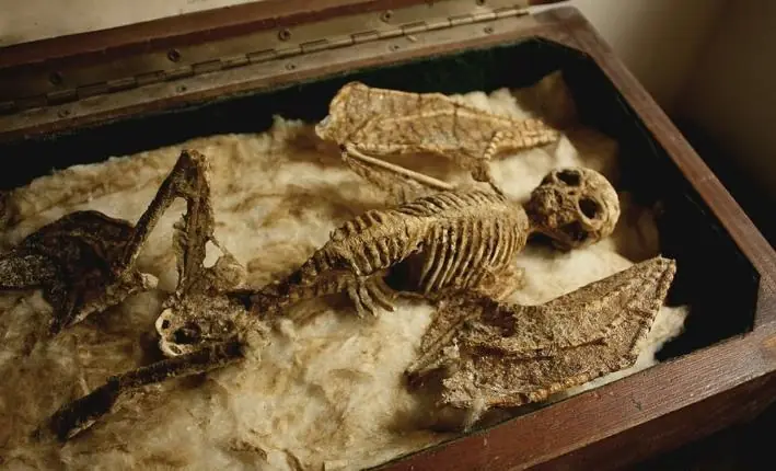 Junto con varios restos de homínidos, la colección también cuenta con otras muestras como este dragón bebé.