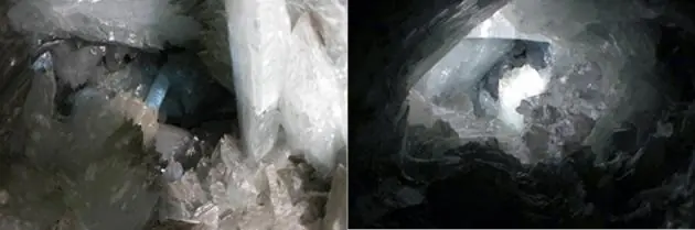 Es una cueva con una alta temperatura y humedad dentro de la geoda, que presenta procesos de condensación, provocan la formación de calcita en la superficie. Encontrada en el año 2000, mientras cavaban un túnel de exploración en el nivel -290. Primero, descubrieron una pequeña apertura, dentro de una cueva tipo geoda de unos 8 m de diámetro, cubierta con grandes cristales blancos, translúcidos, y transparentes. Parecía que un ojo los estaba mirando. También experimentaron algo fantástico, una burbuja obscura dentro de la cueva que brilló como un diamante al tener contacto con la luz.