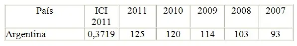 Asimismo, el Índice de Calidad Institucional (ICI) sitúa a Argentina en la posición 125 de un total de 194 países, perdiendo 32 puestos desde 2007.