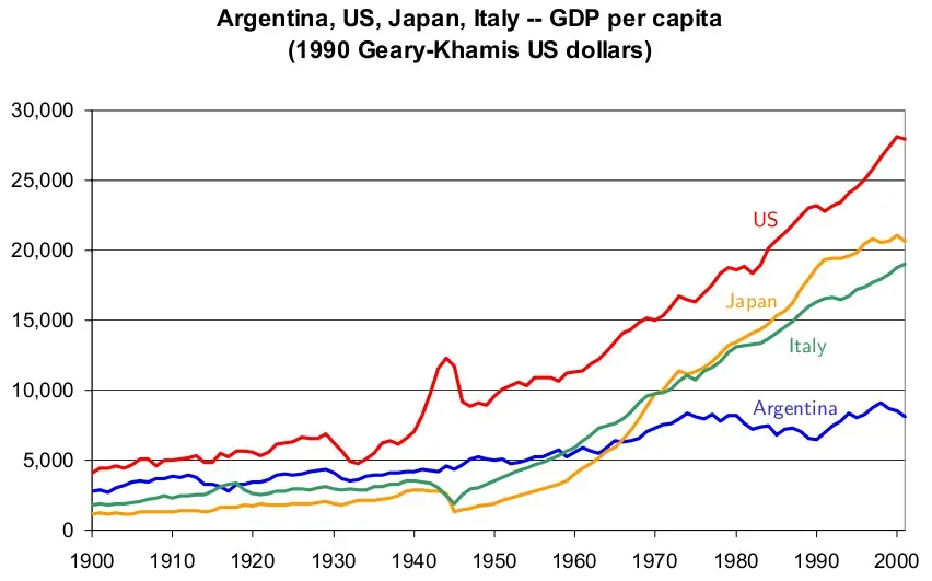 Como resultado, la economía argentina ya había declinado de forma sustancial para mediados del pasado siglo XX.
