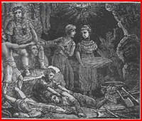 A la mañana siguiente no quedaba huella ninguna de su desenfreno de la noche anterior, sus sirvientes la habían limpiado. Pidió que le trajeran la cabeza y ante ésta, se arrodilló bañado en lágrimas y prometió reformarse. Acercó sus labios a la cabeza, la besó largamente y se fue a su cama llevándola consigo y diciéndole que muy pronto se reuniría con otras cabezas tan bellas como ella...