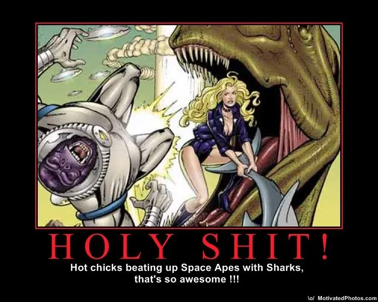 chicas calientes golpean a los simios espacio con tiburones, eso es tan impresionante