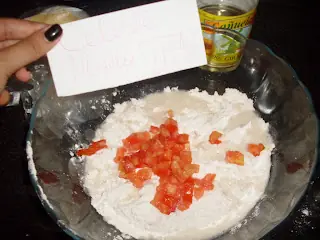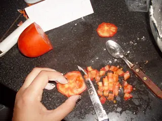 -Cortamos el tomate en rodajas bien chiquitas