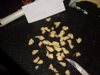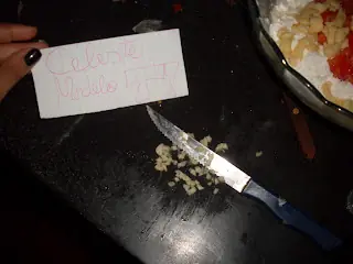 -Ahora cortamos el ajo bien chiquito mas o menos así(uno solo)