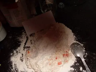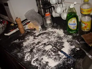 -Esta que viene es para sacarnos la bronca(?) lo tenemos que amasar bastante hasta que quede compacta,si hace falta,agregamos un poco de harina,porque se nos va a deshacer la primera vez.Ah,me olvidaba,antes de ponerlo para amasar,hay que poner un poco de harina en la mesada,y después de que quede compacta la masa le damos varios golpes en la mesa,esta es la mejor parte e.e(acordate de pensar en alguien que no te bancas)