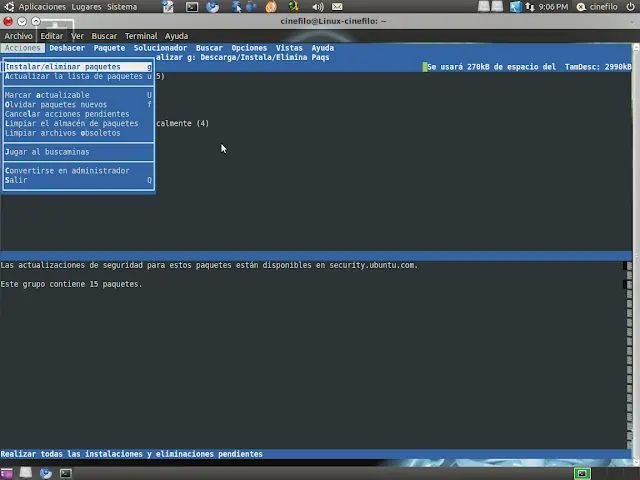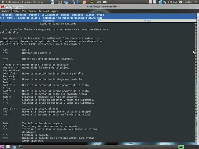 hola si muchos en este planeta utilizamos el comando aptitude acompañado de otro para limpiar o instalar un paquete pero si se utiliza solo se puede iniciar un gestor de paquetes desde la terminal es muy similar a synaptic y se maneja con el teclado es muy util si no estamos trabajando en un entorno gráfico