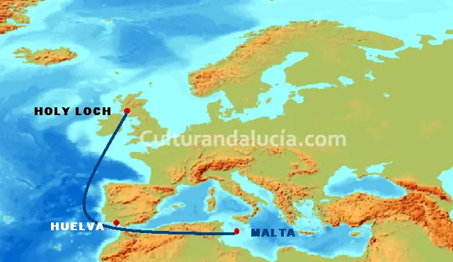 Ruta que siguió el Seraph con el "regalo" para los alemanes a bordo.