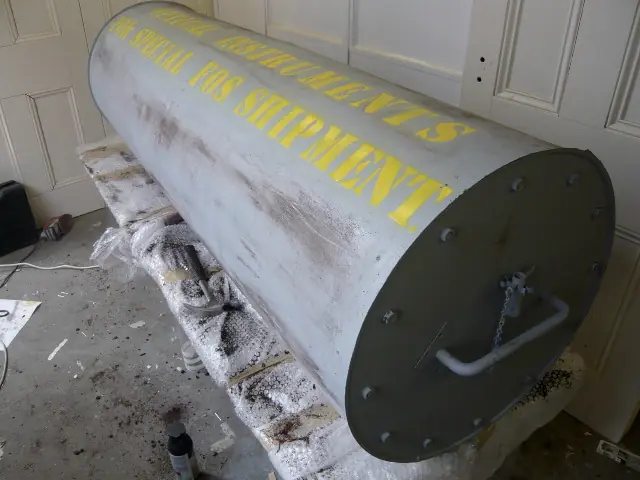 Contenedor especial donde iba el cuerpo del mayor Martin.
