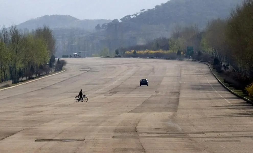 Calles vacias de corea del norte, como no importan ni exportan NADA no hay autos. Tampoco tienen petroleo y dado las sanciones económicas de estados unidos tampoco lo pueden importar. Su principal aliado economico(China) tampoco lo tiene, y dado su boom económico es imposible importarlo desde allí.