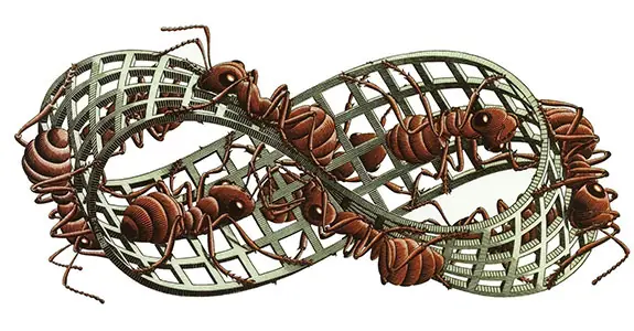 Entre las propiedades de esta cinta, que son las que la hacen paradójica, quizás la que más destaca es que tiene una sola cara y un solo borde, lo que lo convierte en algo similar a un objeto imposible (pero obviamente, posible), al puro estilo de M. C. Escher, de hecho, la imagen superior es de su autoría.[/i]