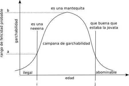 La integral entre i y j nos dará la felicidad probable de un hombre considerando que i es fijo (16 o 18, algún legalista que ayude) y j depende de cuanto estómago tenés o si te gustan las carnes caídas, el rango entre a y b ampliará o no la muestra de probables empernes variando si te cabe un bagayo o si sólo te limitás a modelitos y por ende la campana de garchabilidad se extenderá o disminuirá.