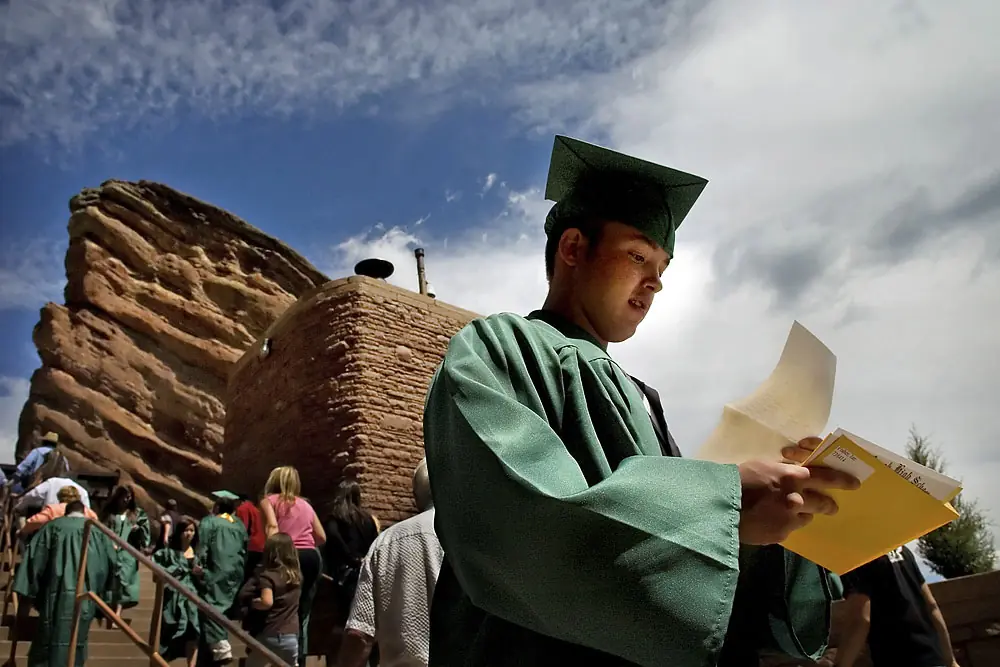 31 de mayo de 2007. 11:26 a.m. Ian estudia su transcripción y su diploma porque se marcha al Bear Creek High School en el Anfiteatro de Rocas Rojo. Él despide la importancia de la ceremonia, pero no del diploma. ¿" Si no consiguiera mi diploma, yo no podría alistarme en el ejército, yo no podría hacer nada - y que haria yo?