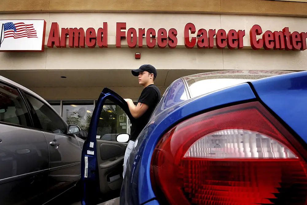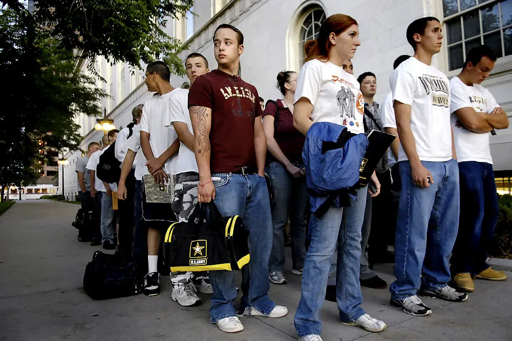 18 de junio de 2007. 5:23 a.m. Las líneas de Ian levantan a otros reclutas en la Estación de Tratamiento de Entrada de Militares de Denver en el principio de un día infinito que lo tomaría a la Fortaleza Benning, Ga.