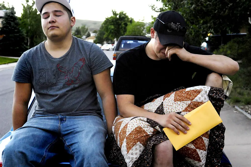 17 de junio de 2007. 8:27 p.m. Ian abraza a "Buda" (en la izquierda) y a Shane.El se dispone a abandonar su casa con el reclutador de ejército a Sargento la 1a Clase Nancy Alessandri, que habla con su papá en el camino de entrada. Alessandri tomó a Ian a un hotel donde él pasaría la noche antes de ser llevado a la Estación de Tratamiento de Entrada de Militares de Denver.