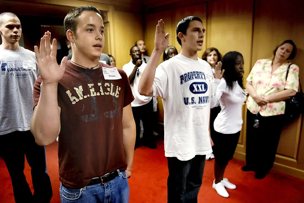 18 de junio de 2007. 11:26 a.m. Ian presta juramento de Alistamiento mientras su mamá mira de la pared en el derecho y la mirada de papá en de la esquina trasera.