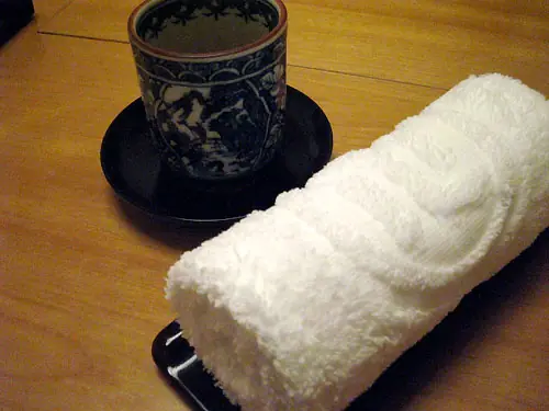 En los restaurantes se dan toallas húmedas antes de la comida,así como también,té verde.