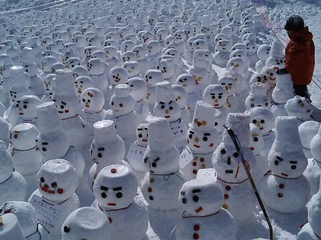 En Japón, los muñecos de nieve están formadas por dos grandes bolas de nieve, no tres.
