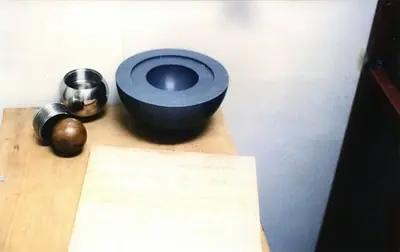 Entonces, el cachondo de tu guía podría decirte: "no, no, lo que explota es eso de ahí". Y tú mirarías, claro. Ahí, dentro de unos contenedores similares a neveras de camping, verías tres tipos de objetos. El primero, unas esferas metálicas pulidas muy parecidas a bolas de petanca. El segundo, una bolsa de polvo blanco. El tercero, una especie de termo de café pequeño.